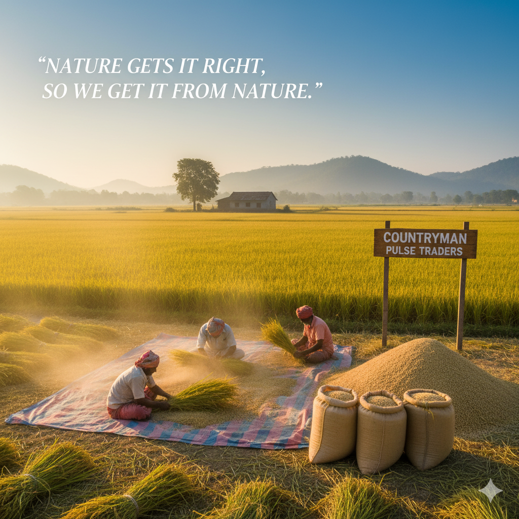 At Countryman Pulse Traders, we’re more than just a wholesale business; we’re a family-run company with a deep-rooted commitment to quality. We have been a dedicated wholesale dealer of premium rice, paddy, pulses and cereals. We combine traditional values with a dedication to quality, ensuring that every product we offer is carefully sourced and processed to meet the highest standards. Our legacy is built on trust, integrity, and a passion for delivering wholesome, nourishing food from our family to yours. Our philosophy is to produce ecological rice and pulses of the best quality. While our business isn’t huge, our products are, truly, of the best quality you can get. Our objective is to assist farmers in maximizing their profits by ensuring that they receive a fair price for their products, minimizing the involvement of intermediaries, and reaching a wide range of consumers.
